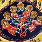 '에페수스의 7인의 잠든 자’ 4조각 이콘 중 에페수스의 7인의 잠든 자 부분, 19세기 초, 작자미상,목판에 템페라, 모스크바 동방정교회 신학 아카데미, 모스크바, 러시아 ☞ 성화 해설 2011년 7월 31일 연중 제18주일 서울주보 1면 ‘에페수스의 7인의 잠든 자’로 불리는 성 막시미아누스, 성 말쿠스, 성 마르티니아누스, 성 디오니시우스, 성 요한, 성 세라피온과 성 콘스탄티누스는 황제 데키우스의 박해를 피해 동굴로 들어간 뒤 하느님의 은총으로 잠이 들었고 200년이 지난 뒤 깨어났다고 전해진다. 이 이야기를 옮긴 이콘 속 성인들은 도시 에페수스를 배경으로 어머니의 품속과 같이 아늑한 곳에서 박해를 피하고 있다고는 느껴지지 않을 만큼 평화롭게 잠자는 청년들의 모습으로 그려져있다.(조우리 베네딕다)..